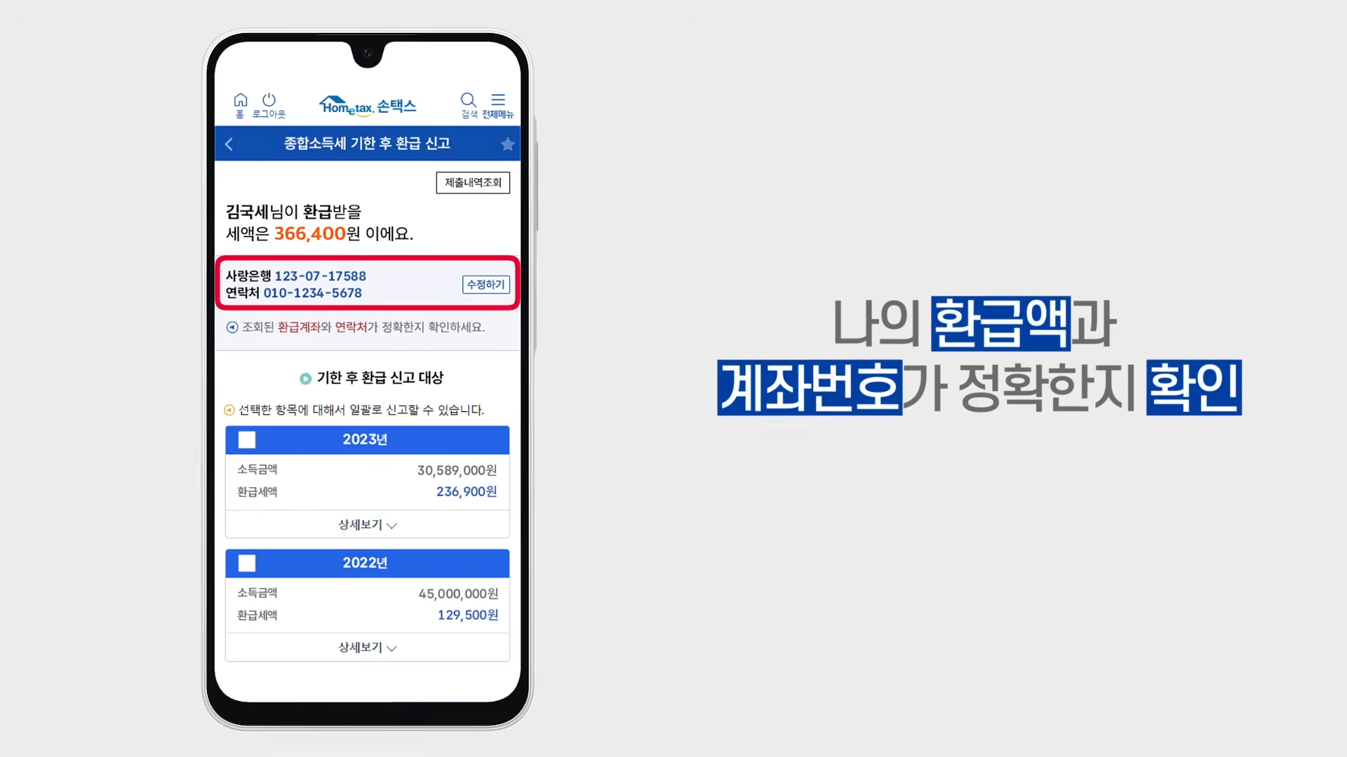 홈택스에서 국세청이 자동 계산한 환급 예상 금액을 확인합니다.