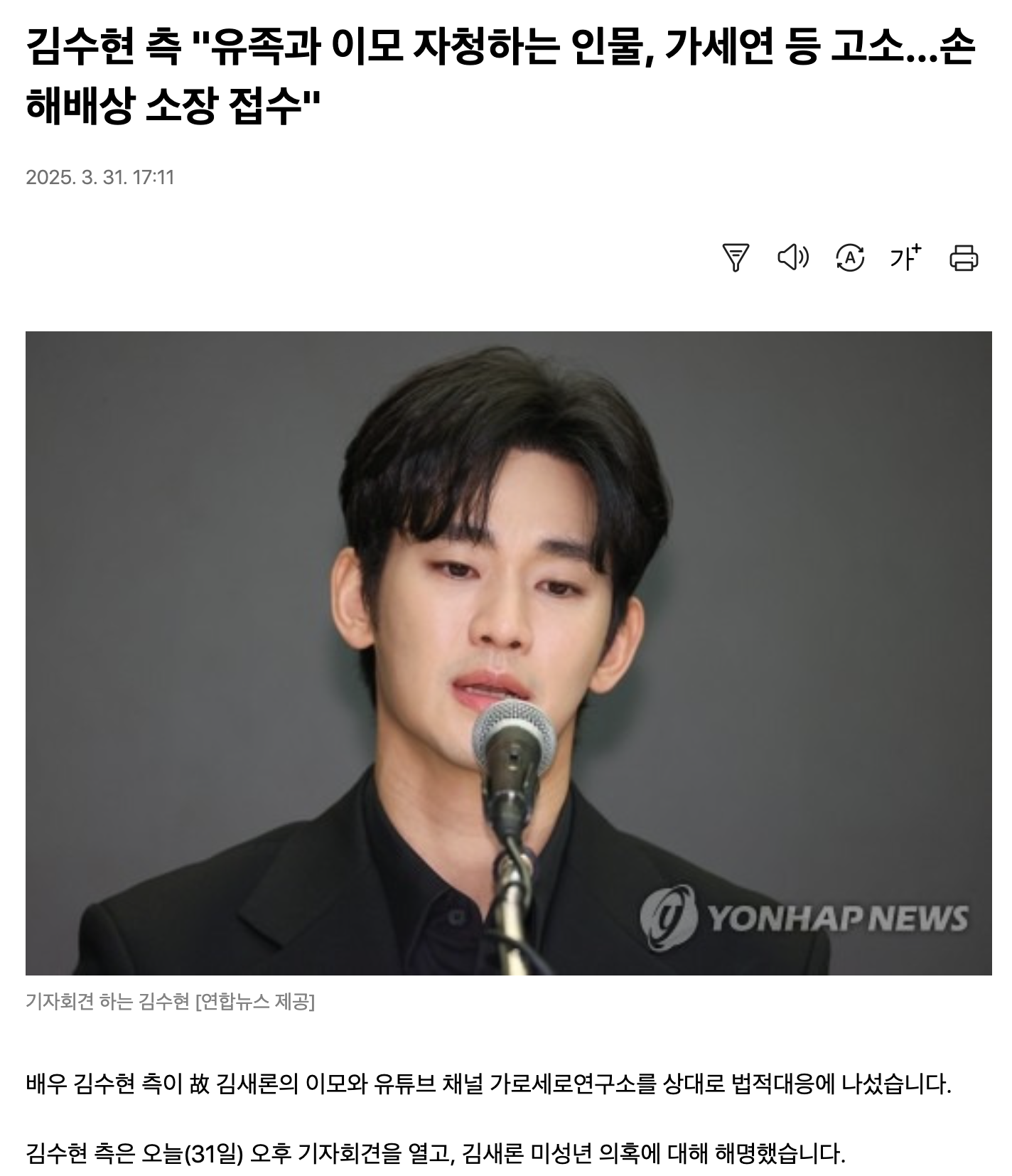 2025년 3월 31일, 김수현 긴급 기자회견 열다