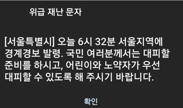 5월 31일 오전 6시 32분 서울지역에 경계경보가 발령되었습니다. 많은 분들이 새벽에 놀라셨을 텐데요.