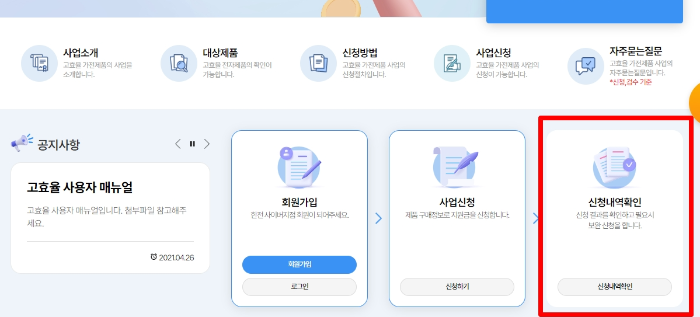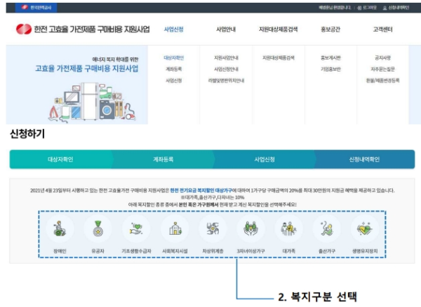 1. 한전 고효율 가전제품 구매비용 지원사업 홈페이지 접속