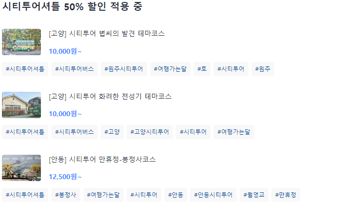 카카오T에서 이벤트를 맞아 시티투어셔틀이 모두 50% 할인 중입니다.