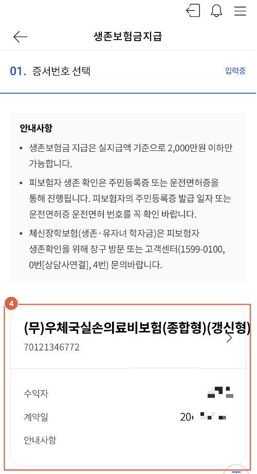 우체국 실비보험 - 중도 생존 보험금 지급, 금액, 수령하기