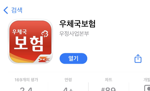 먼저 안드로이드 또는 iOS 스토어를 통해 우체국 보험 어플을 다운로드 받습니다.