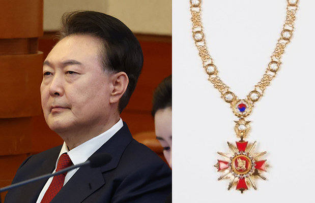 하지만 윤 전 대통령은 임기 중 수여되지 않았고, 탄핵으로 퇴임한 만큼 전직 대통령 자격이 인정되지 않아 수훈이 불가능해졌습니다.