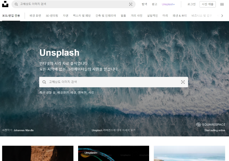 언스플래쉬는 수백만 장의 무료 고품질 이미지를 제공하며 전 세계 많은 사진작가들이 참여해 만들어진 사이트입니다. 다양한 주제의 컬렉션과 에디터가 선정한 편집 추천을 제공합니다. 드롭박스(Dropbox), 트렐로(Trello) 등에서 언스플래쉬와 협업하여 서비스하는 문서나 커뮤니티에 언스플래쉬의 이미지를 무료로 제공하고 있습니다.