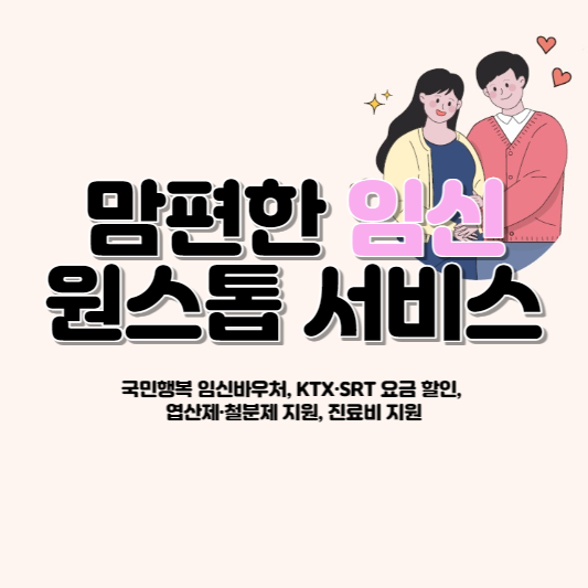 KTX·SRT 요금 할인, 엽산제·철분제 지원, 진료비 지원 등 해당되는 여러 혜택을 받을 수 있는 '맘편한 임신 원스톱 서비스' 신청 방법을 안내해 드리겠습니다.