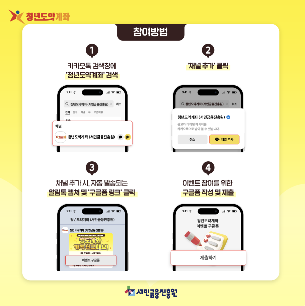 또한 4월 9일까지 '청년도약계좌'카카오 채널 친구 추가 후 구독 인증을 한 50명에게 5,000원 상당 기프티콘 제공 중에 있습니다.