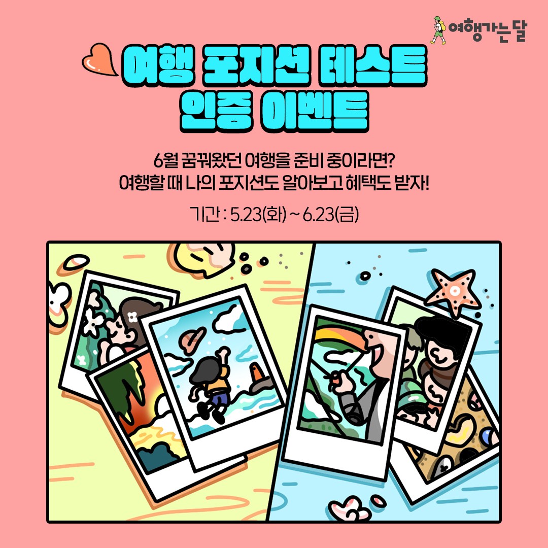 6월 여행 가는 달에만 진행되는 특별한 이벤트에 참여하시고 푸짐한 경품도 챙겨보세요.