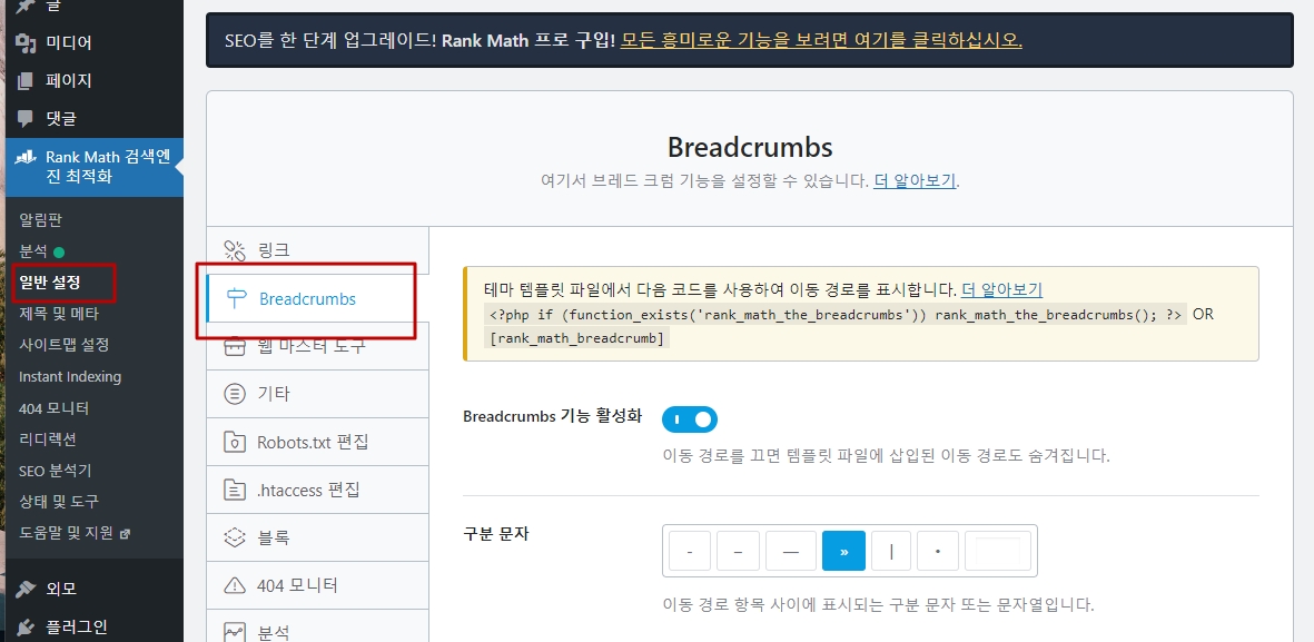 새로운 기능을 발견해 적용하고 바로 포스팅하러 왔습니다. 이전번에 워드프레스 작업을 하면서 브레드스크럼이란 무엇이고, 적용하는 방법, 이유에 대해 간단히 설명드렸는데요, 이번엔 랭크매쓰(Rank math) 플러그인을 통한 브레드스크럼 적용 방법에 대해 소개해 드리겠습니다. 아 물론 이 내용은 원프레스 테마 이용자 대상입니다.